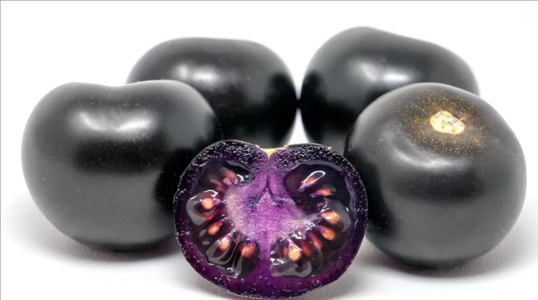 这种紫色番茄通过基因编辑技术加入了金鱼草的两个基因,使其能产生一种名为花青素的抗氧化剂,从而呈现出独特的紫色,味道和普通番茄并没有太大区别,主要的作用就是提供健康益处。